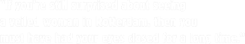 Alia’s open and curious mind gives her an air of disarming calm. She began wearing a veil in high school, both in solidarity to a persecuted friend and out of curiosity about the fashion statement it made. From there, Alia has become a proud ambassador for a religion she knows will only be understood if people truly begin to talk to one another and share information directly. To her, the web and the newspapers are filled with discussions about Islamic and Moroccan culture that are full of stereotypes she can’t identify with.